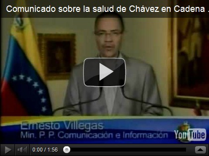 El Gobierno Bolivariano mantiene contacto permanente con el equipo médico que atiende al Comandante Chávez así como con los familiares que lo acompañan en su proceso posoperatorio en La Habana, Cuba.