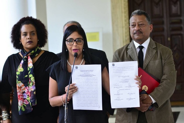 La presidenta de la ANC, Delcy Rodríguez, declaró “Ha sido un mensaje muy claro al país de paz y respeto, de defensa de la soberanía”.