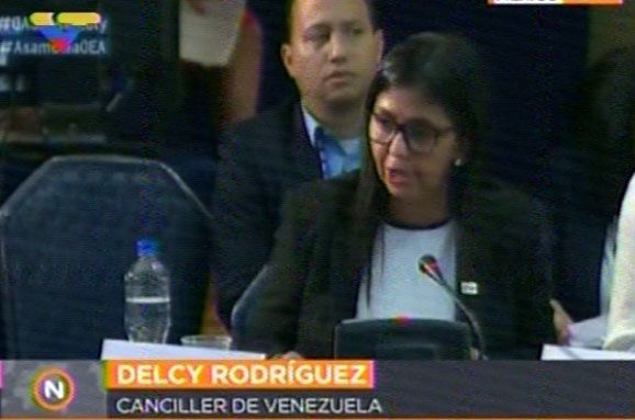 La canciller de la República, Delcy Rodríguez, durante su intervención en la Asamblea General de cancilleres de la OEA realizada en México, afirmó que Venezuela no reconoce la reunión ni los resultados que surjan.