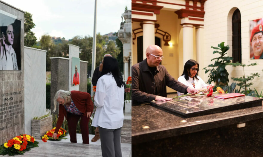 Posteriormente, la también ministra de Hidrocarburos se trasladó al Cementerio General del Sur, iniciando su recorrido en el mausoleo de su padre, el dirigente socialista Jorge Antonio Rodríguez. En este punto, estuvo acompañada por su madre y su hermano, Jorge Rodríguez, presidente de la Asamblea Nacional, en un gesto que subraya la unidad de la cúpula gobernante en la capital.