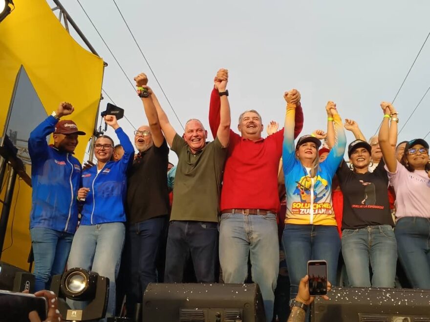 El candidato a la Alcaldía de Maracaibo por el Gran Polo Patriótico Simón Bolívar (Gppsb), Gian Carlo Di Martino, hizo su cierre de campaña este miércoles junto al gobernador Luis Caldera y el presidente de la Asamblea Nacional, Jorge Rodríguez.