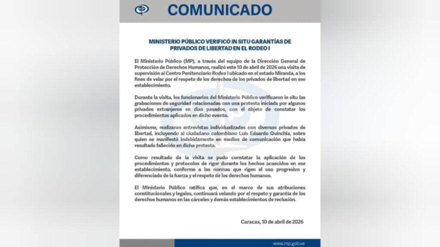En cumplimiento de sus atribuciones constitucionales, una delegación de altos representantes del Ministerio Público realizó una visita de inspección integral a las instalaciones del Centro Penitenciario Rodeo I. El objetivo primordial de esta actividad fue verificar de primera mano el estado de las infraestructuras, así como las condiciones de vida y el trato brindado a la población penal que allí se encuentra.