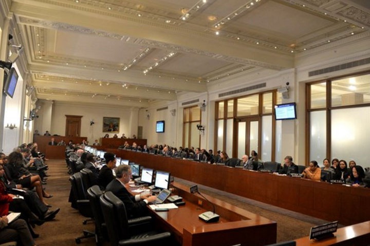El embajador de México, Luis Alfonso De Alba, subrayó que es una reunión conjunta para atender dos solicitudes. Dijo que entre los dos puntos del orden del día está la consideración del proyecto sobre la situación de la República Bolivariana de Venezuela presentado por varias delegaciones y la declaración en respaldo a la institucionalidad democrática, al diálogo y paz en Venezuela, expuesto por la delegación venezolana.