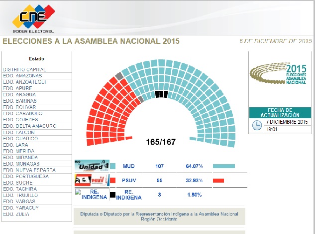 El Consejo Nacional Electoral (CNE) actualizó la noche de este lunes en su portal web los candidatos y candidatas electos para ejercer funciones legislativas en la Asamblea Nacional para el período 2016-2021.