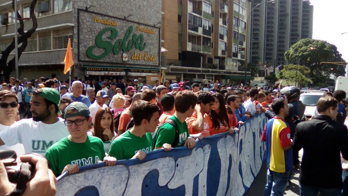 Hasler Iglesias, presidente de la Federación de Centros Universitarios de la Universidad Central de Venezuela, expresó desde la movilización que presentarán a la Nunciatura varias exigencias: “Que en este proceso que se está dando, se involucre la liberación de los estudiantes detenidos, no son nada más dirigentes políticos los que están detenidos injustamente, también estudiantes; en segundo lugar, que se dé una solución urgente a la falta de medicinas y alimento mediante el recibimiento de la ayuda internacional y en tercer lugar, la convocatoria urgente de un proceso electoral nacional que nos permita a través de unas elecciones limpias darle un feliz término a este proceso (…)”.