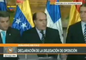 El presidente de la Asamblea Nacional, Julio Borges, ofreció declaraciones este sábado 2 de diciembre luego de culminada las discusiones con representantes del Gobierno en República Dominicana. Dijo que el próximo 15 de diciembre esperan finiquitar los acuerdos, con miras a unas elecciones presidenciales con garantías de seguridad.