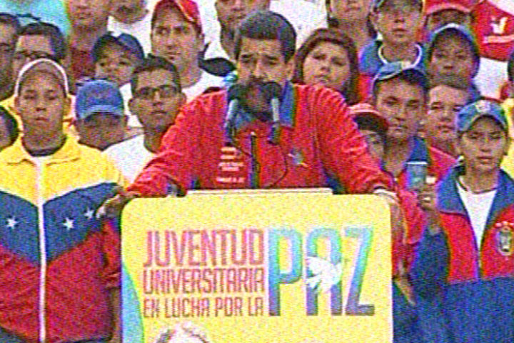 El presidente de la República, Nicolás Maduro, recibe este sábado en la avenida Universidad, en el centro de Caracas, a los estudiantes que marcharon desde la Plaza Venezuela para manifestar su respaldo a las políticas en materia educativa del Gobierno y en rechazo a los actos de violencia registrados en el país el último mes.