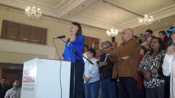 Acompañada y apoyada por miembros de la Mesa de la Unidad Democrática (MUD), indicó que esta acusación nueva es “Un abuso que ha llegado a los extremos”, pero que así mismo sus abogados se manifestarán próximamente para informar las medidas que se tomarán frente al hecho.