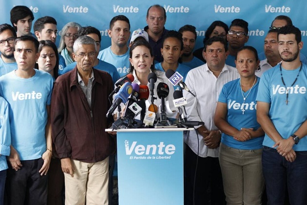 “Venezuela: mientras la MUD siga en esa ruta, @VenteVenezuela no va a seguir siendo parte de esa coalición (…) ¿Que Maduro se quede hasta diciembre? No, no lo podemos aceptar. No podemos claudicar”, sostuvo en rueda de prensa.