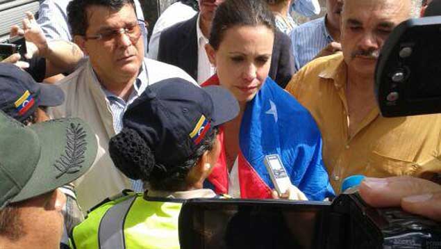 La exdiputada a la Asamblea Nacional, María Corina Machado, no pudo entrar este martes a la sede de la Asamblea Nacional como lo tenía previsto para intentar ocupar su curul, pese a que el Tribunal Supremo de Justicia (TSJ), la noche de este lunes, ratificó como procedente la pérdida de su investidura como parlamentaria.