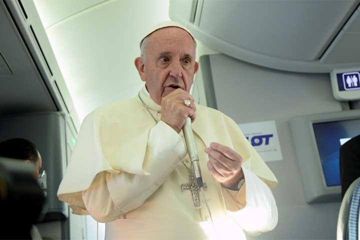 El papa Francisco dijo en el avión en el que regresó a Roma desde Cracovia, este domingo, que cree que se quiere al Vaticano en el grupo de mediación sobre Venezuela, aunque matizó que no estaba seguro de ello.