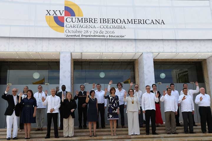 La secretaria general iberoamericana, Rebeca Grynspan, hizo así mención en la inauguración de la cita al «apoyo unánime al proceso de paz en Colombia». «Hacemos votos para que este proceso concluya con la voluntad y el objetivo que estoy segura comparten todos los colombianos, que es vivir en paz», añadió.