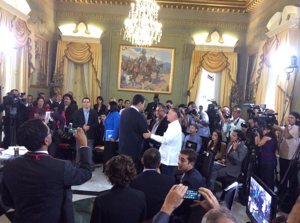 Maduro expresó: «El campeón nuestro en horas de trabajo diario es Arias Cárdenas», durante una rueda de prensa realizada en Caracas con medios internacionales en el Palacio de Miraflores a la que asistió el Gobernador del Zulia.