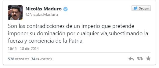 “El Presidente Obama ha dado hoy un paso en falso contra nuestra Patria, al firmar las sanciones a pesar del rechazo nacional y continental”, dijo el primer mandatario a través de la red social Twitter.