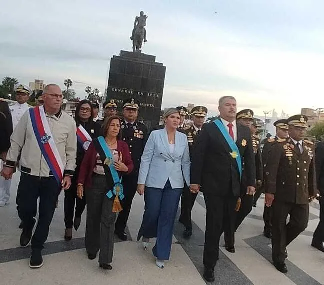Ing. Luis Caldera, Gobernador del Zulia. El Gobernador inició su discurso manifestando el gran compromiso de estar frente a la imagen de Urdaneta que se ha venido tejiendo durante 26 años en la República Bolivariana de Venezuela: la de los venezolanos y zulianos que han sido leales y firmes ante ataques, medidas y sanciones.