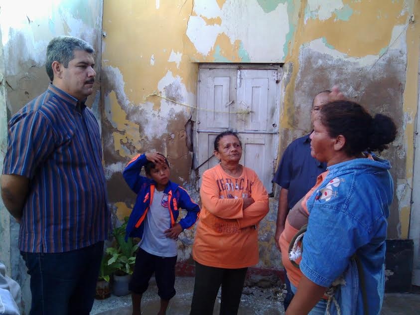 El alcalde Luis Caldera se reunió con algunos habitantes afectados del callejón 8, del sector El Hacha, de la parroquia San Rafael de El Moján, para evaluar los daños causados por la tormenta y los fuertes vientos en algunas de las viviendas.