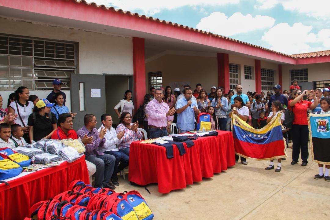 Los 438 niños y niñas de la Unidad Educativa Estadal Comandante Remigio Negrón, ubicada vía La Sibucara en la parroquia Venancio Pulgar, recibieron con alegría la visita del alcalde bolivariano, Willy Casanova, quien se presentó en el colegio para entregar personalmente los morrales con útiles y uniformes escolares que necesitan para iniciar sus clases.