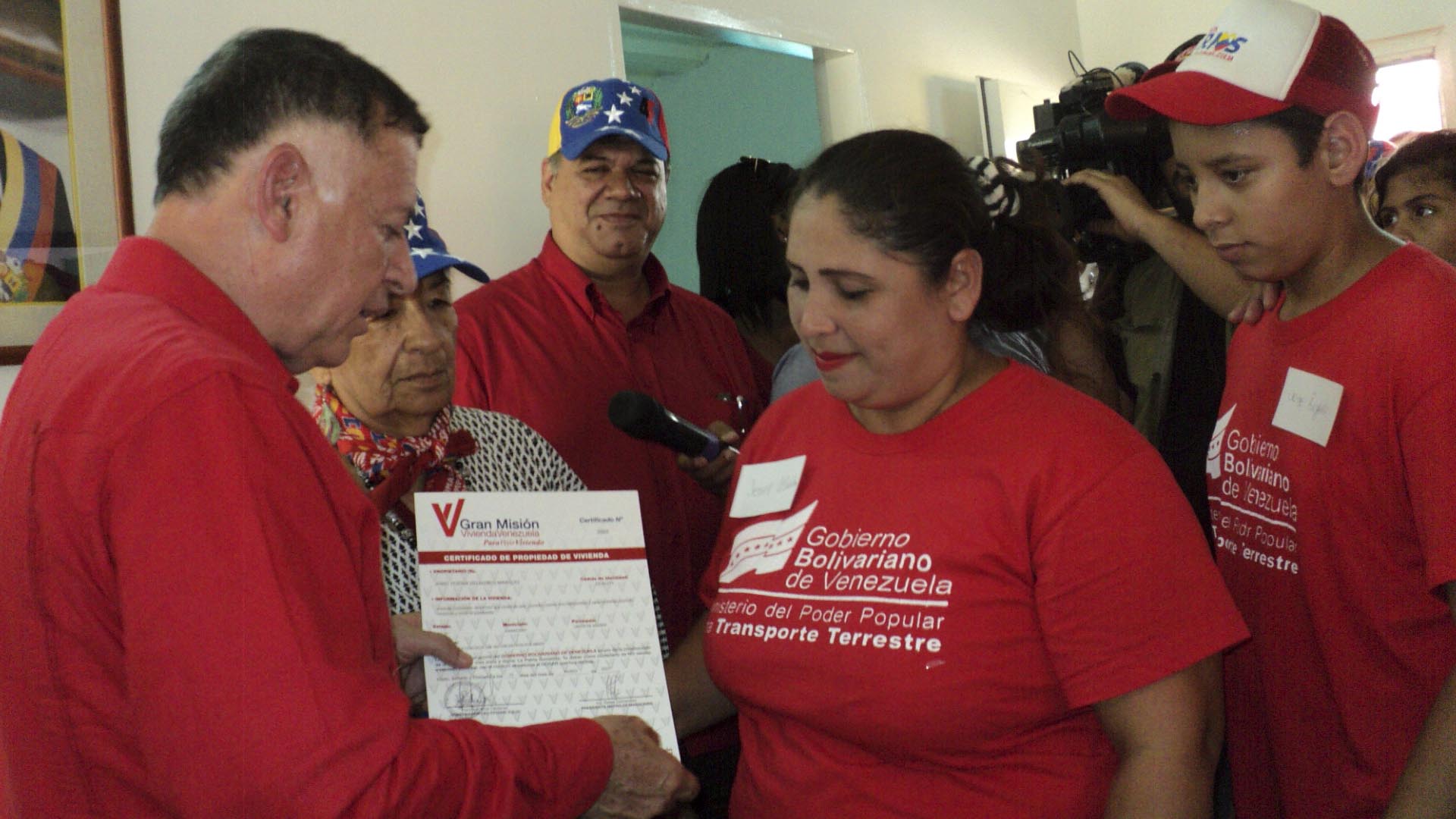 A través de la red social Twitter, Arias escribió: «Maibelin Fuenmayor y su familia reciben hoy una vivienda digna gracias a la Gran Misión Vivienda. #JusticiaSocial».