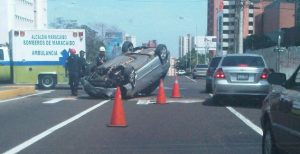 Así quedó hoy un vehículo al volcar en la calle 77 (5 de Julio) con la avenida 3H de Maracaibo. El exceso de velocidad y el irrespeto a otras normas de tránsito continúan causando desastres en la ciudad.