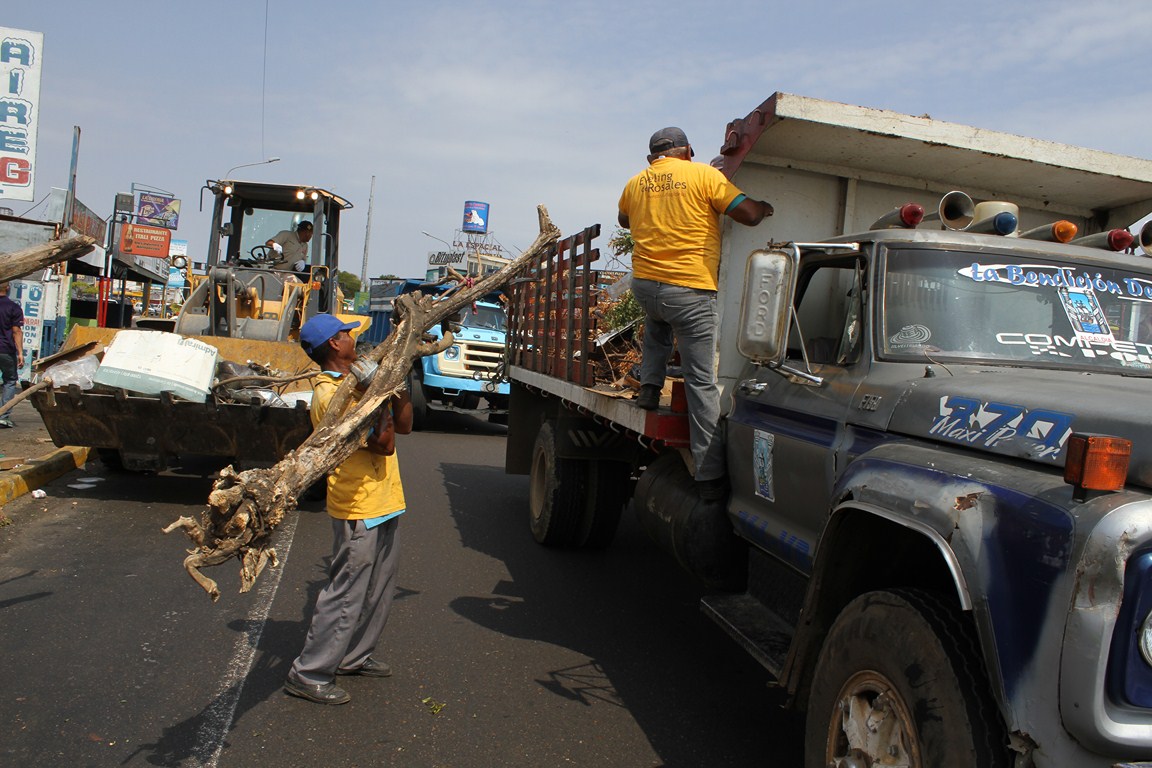 Indicó que estas labores son apoyadas por unidades compactadoras pertenecientes al Instituto Municipal de Aseo Urbano (Imau) y camiones volteos 350 de la Dirección de Servicios Públicos, todo con el propósito de abrir las arterias viales afectadas y permitir el libre tránsito en la ciudad de Maracaibo.