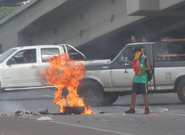 Aparte de troncos, piedras y ramas los manifestantes quemaron cauchos para cerrar el paso de los vehículos y tomaron una buseta para usarla de barricada. No le causaron daño al vehículo ni al chofer, pero los mantuvieron retenidos cerrando el canal que accede desde la autopista número Uno.
