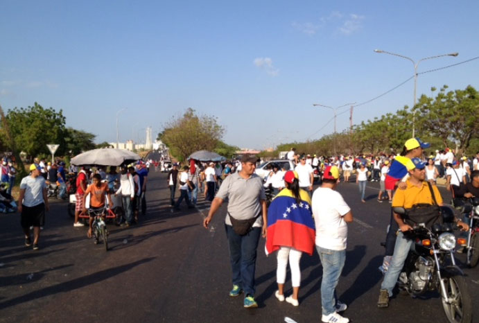 Manifestantes cerraron la tarde de este martes la circunvalación Uno, en ambos sentidos, a la altura del distribuidor Cañada Honda en Maracaibo. Una gran cantidad de efectivos de la Guardia Nacional Bolivariana (GNB) y CPBEZ, están ubicados frente al cierre con equipos antimotines.
