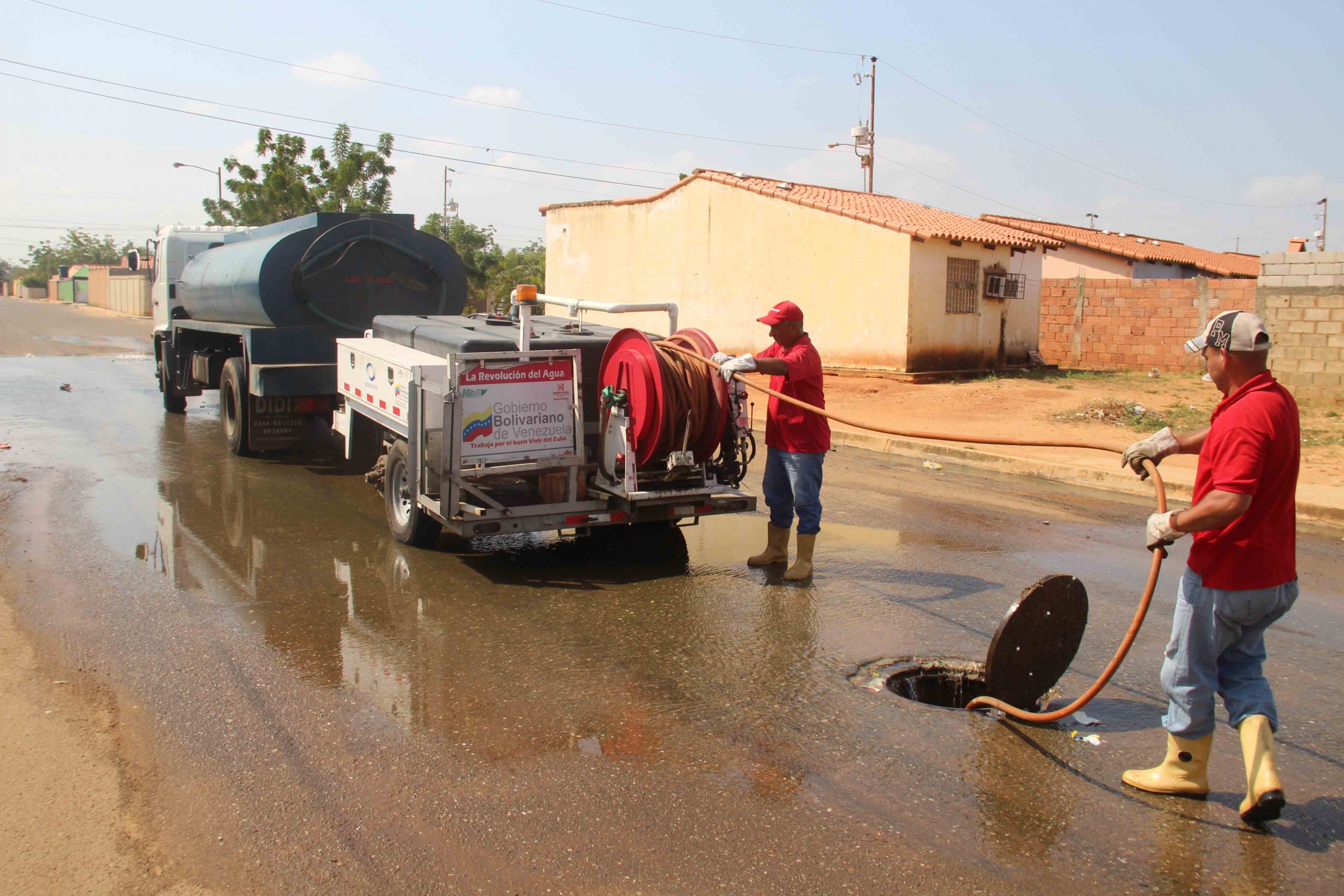 Cuadrillas de saneamiento de la hidrológica del Lago de Maracaibo (Hidrolago) empleando herramientas y unidades Vacum, desobstructor, ejecutaron el destape y la