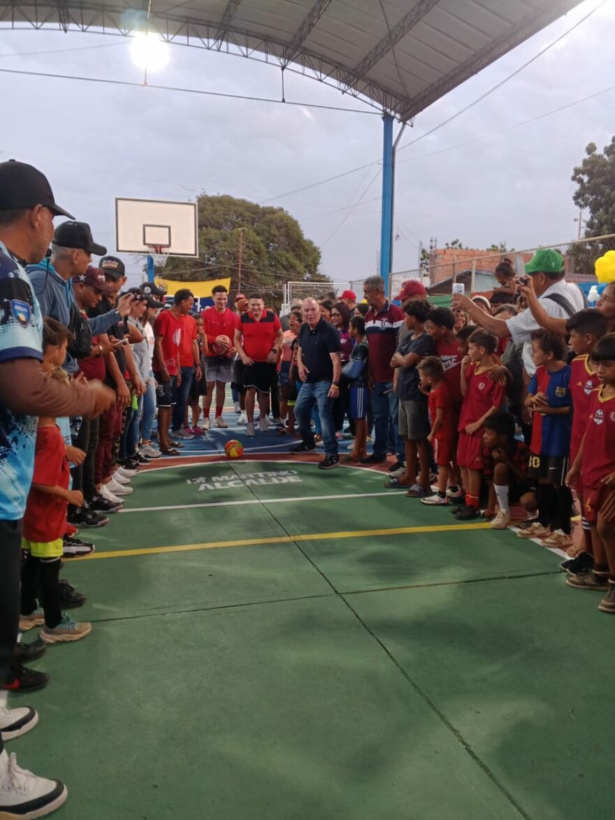 Una cancha bonita y reacondicionada fue el resultado del poder popular organizado de tres consejos comunales de la parroquia Coquivacoa, al norte de Maracaibo, donde fue invitado a compartir una tarde de recreación deportiva Giancarlo Di Martino.