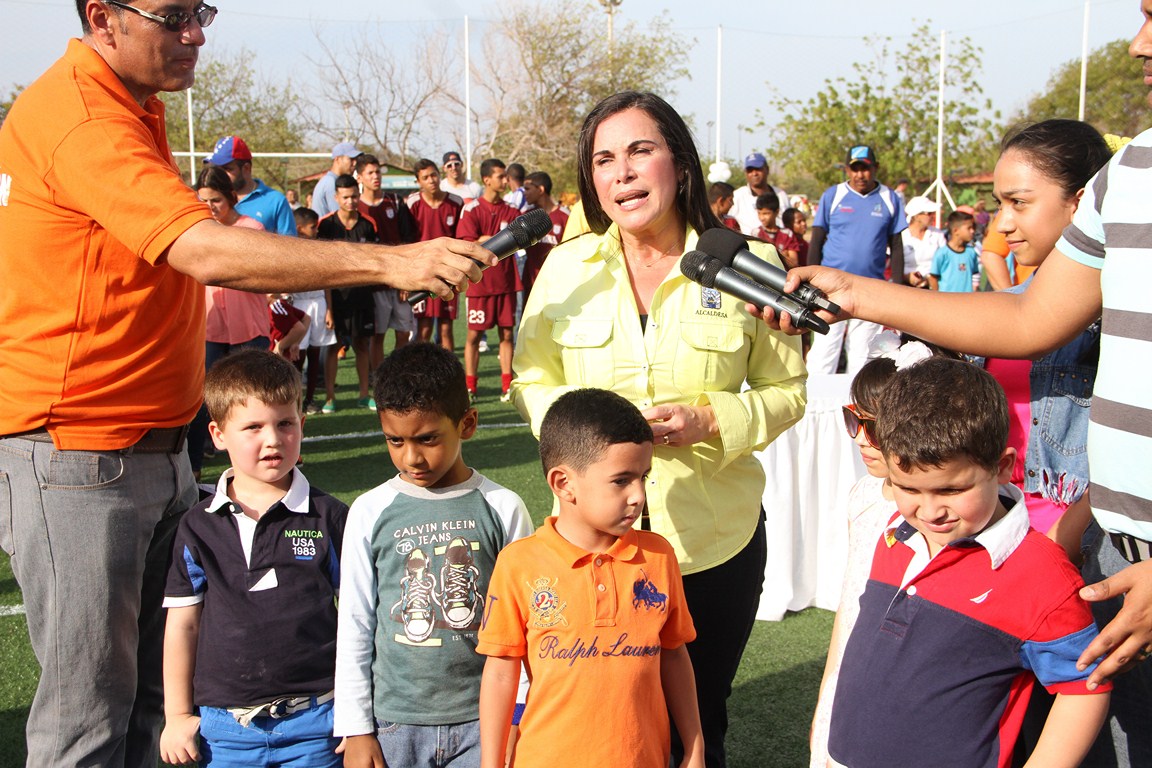 A su llegada al lugar, la alcaldesa también aprovechó para inaugurar una cancha de grama artificial para la práctica del fútbol. Inversión que ascendió a los 8 millones de bolívares. Cuatro canchas han sido inaugurada en lo que va de año.