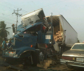 Reportan que está cerrada la vía a Perijá, en el Kilómetro 59, por choque de una gandola que transporta carnes.