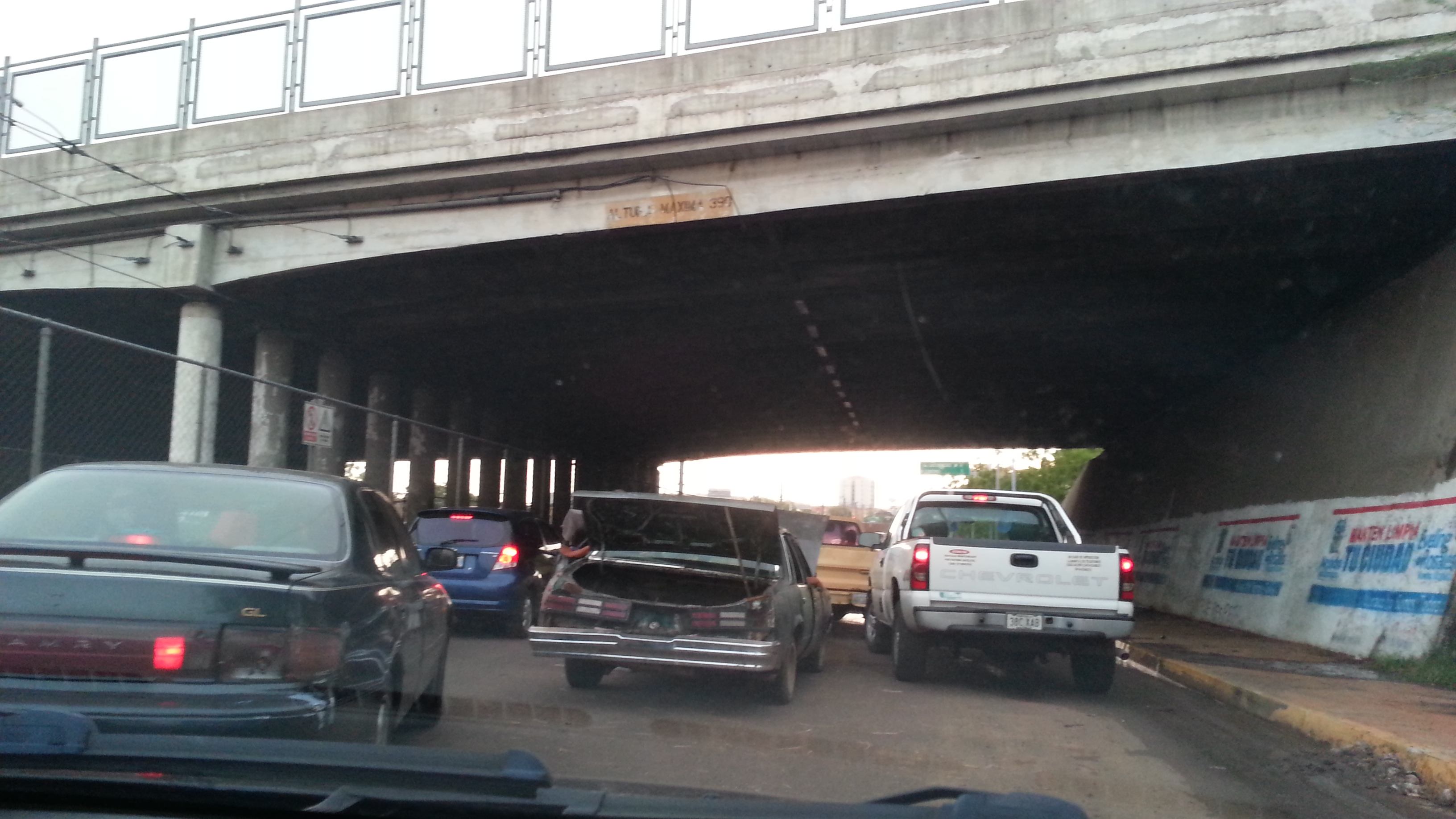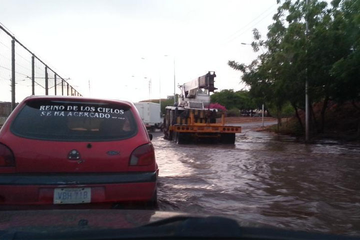 La acumulación de agua por el aguacero caído el fin de semana causa problemas en el tráfico de Maracaibo.