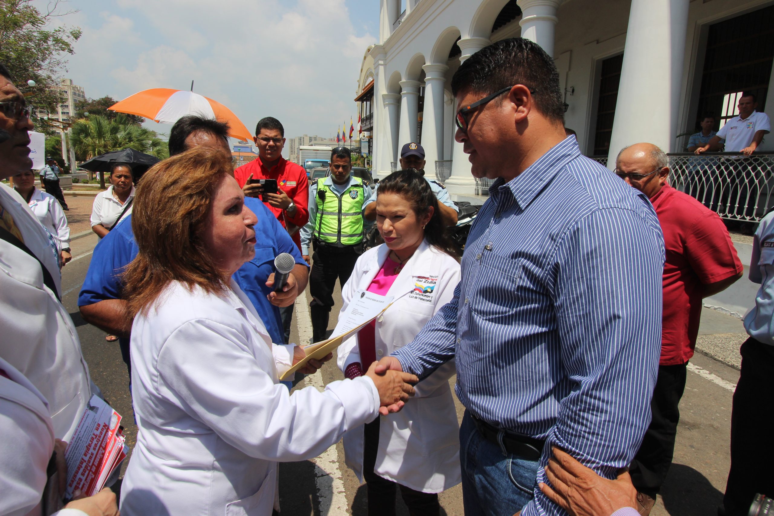 Representantes de la Gobernación Bolivariana del Zulia recibieron en las instalaciones del Palacio de Gobierno un documento entregado por galenos pertenecientes al gremio regional, donde se plantea la problemática del sector salud y se solicita al Ejecutivo mejoras en cuanto a beneficios contractuales y condiciones de trabajo.