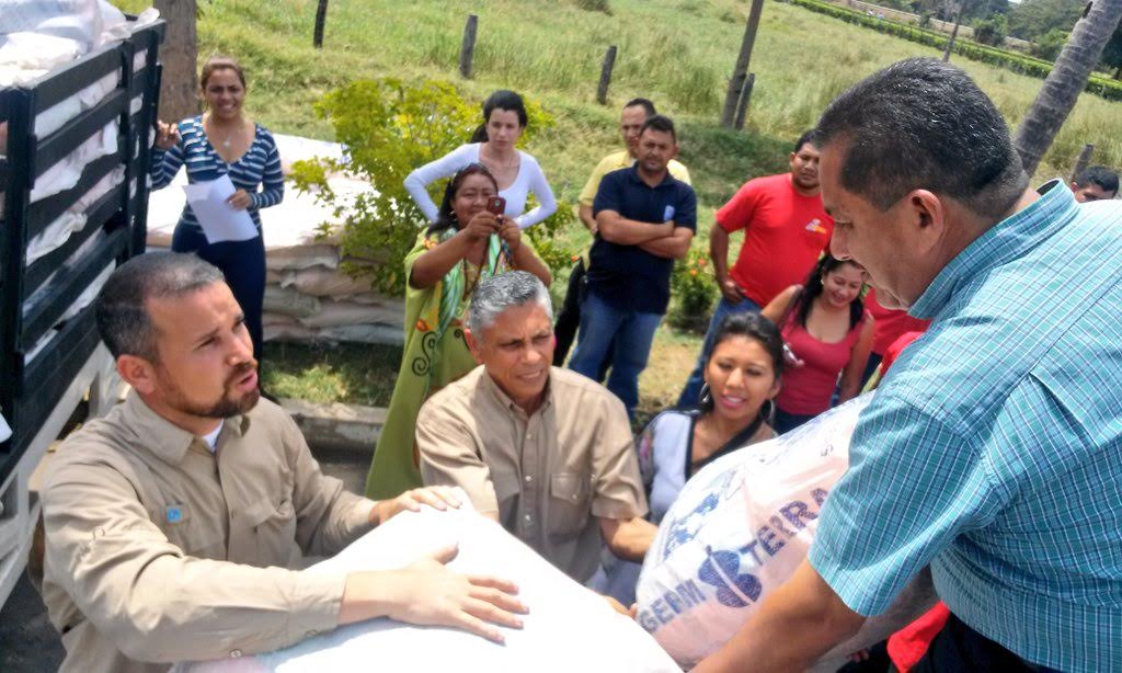 Junto al Alcalde del Municipio La Guajira, Hebert Chacón, el secretario de Desarrollo Agropecuario, Carlos Ernesto Portillo realizó en esta zona la jornada de entrega de insumos y de semillas de pasto a través de Agropatria y Agrozulia respectivamente.