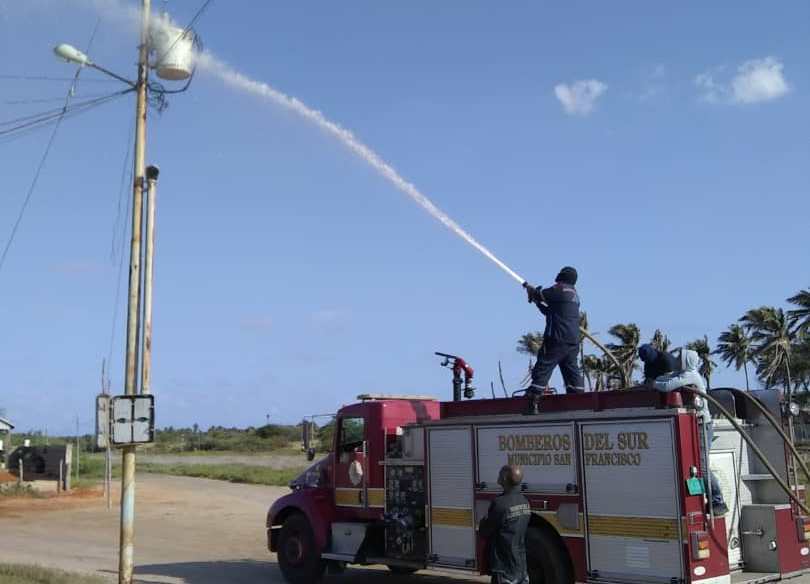 Estos trabajos fueron desarrollados por la Secretaría de Asuntos Eléctricos del Zulia, Corpoelec y el Cuerpo de Bomberos de San Francisco. Este componente abordó las principales parroquias del municipio Guajira limpiando los aisladores y el tendido eléctrico con agua impulsada por las mangueras extintoras de incendio que poseen los camiones del Cuerpo de Bomberos de San Francisco con la finalidad de bajar los niveles de contaminación de estos artefactos y optimizar el servicio en la zona.