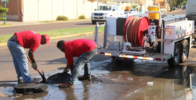 Una cuadrilla de trabajadores y un equipo desobstructor realizó la limpieza de las alcantarillas de los drenajes de agua de lluvias y el destape de las bocas de visita que estaban obstruidas por desechos sólidos que impedían el correcto funcionamiento de la red de colectores.