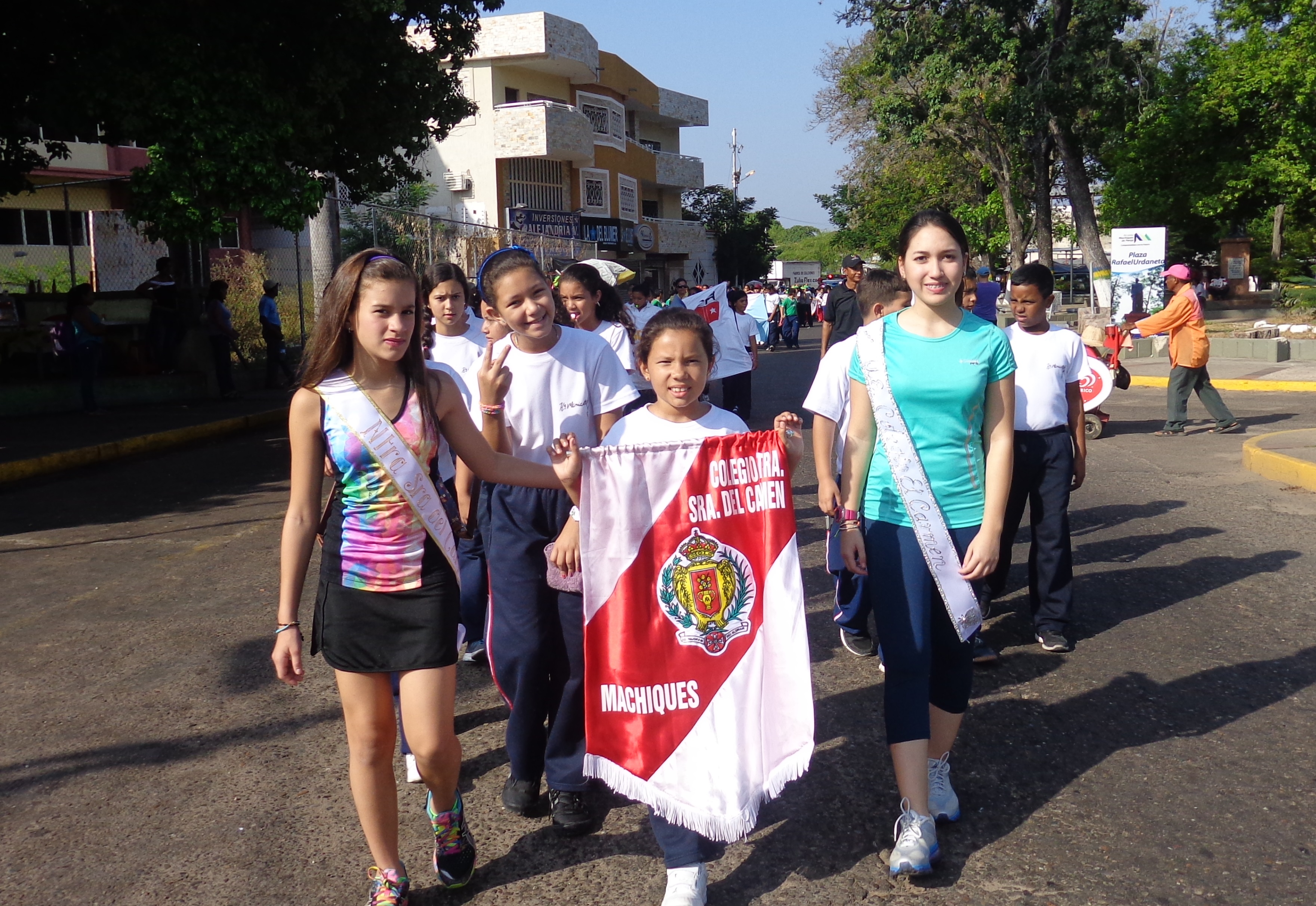 La inauguración de los juegos XVII Municipales inter-escolares inicio con niños, niñas y adolescentes, de las diferentes unidades educativas quienes partieron caminando desde la plaza bolívar hasta la cancha de usos múltiples Lencho Parra donde participo la Banda Show Nuestra Señora del Carmen.