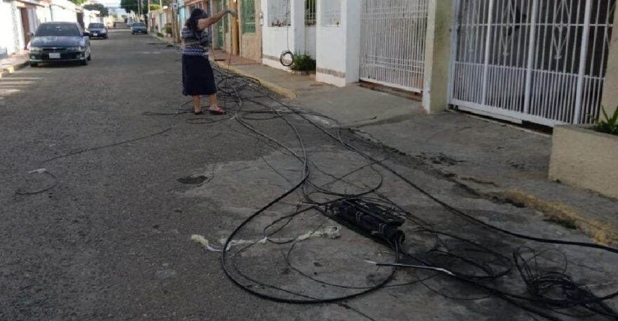 Este problema se presenta específicamente en la urbanización Mara Norte, primera etapa transversal C desde el día jueves 27 de julio, cuando se vino abajo el poste de alumbrado público trayendo consigo los cables de los otros postes, dejando sin servicio eléctrico a toda la zona.