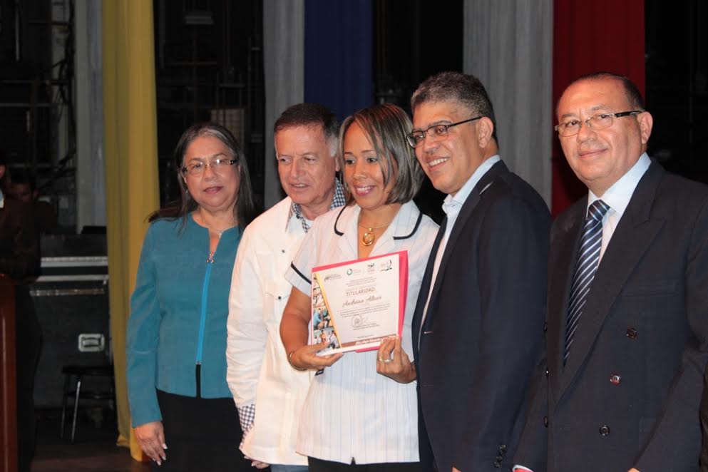 El Ministro Elias Jaua manifestó que en todo el país se hará la entrega de 45 mil titularidades a educadores, con lo cual se alcanza el 92 por ciento de los docentes beneficiados, «el titulo les garantiza la estabilidad a su carrera de docente».
