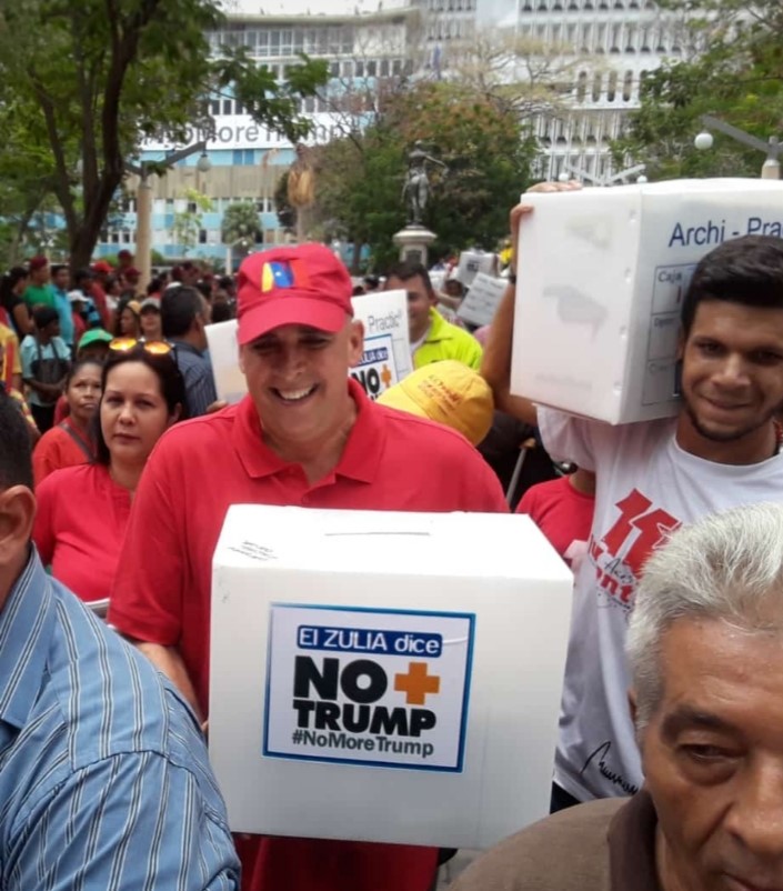 El jefe político del PSUV Leonidas González encabezó una gran concentración en la plaza Bolívar de Maracaibo para hacer entrega formal al Vicepresidente Territorial del PSUV Omar Prieto, de las 111 mil 604 firmas recolectadas en el municipio Lagunillas, como expresión de rechazo contundente al bloqueo económico y financiero impuesto por el Gobierno de Donald Trump.