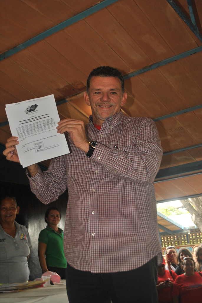 “Quiero agradecerle a todo el pueblo y a Dios, desde aquí al presidente Chávez toda la gloria. Le hacemos un reconocimiento público al árbitro al CNE los felicitamos por su trabajo”, expresó Olegario Martínez, alcalde reelecto en el municipio Rosario de Perijá al recibir el acta de proclamación emitida por la Junta Municipal Electoral, que certifica su victoria contundente con 59,1% de los votos emitidos en los comicios de este domingo.
