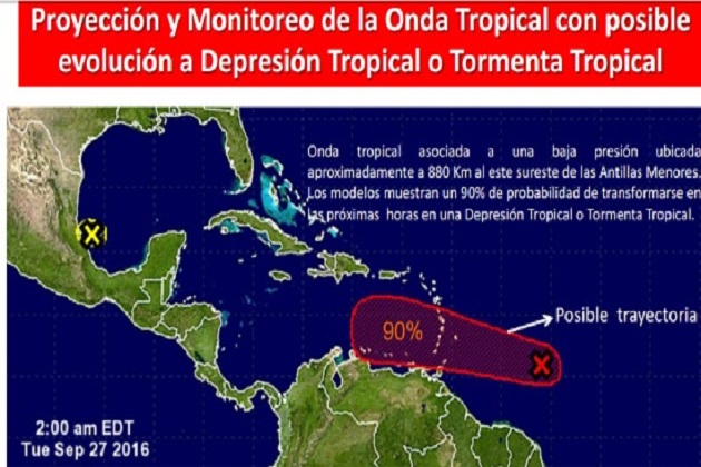 “En este momento es una onda tropical, es probable, hay alta probabilidad que se convierta en una depresión tropical que tiene vientos en su núcleo de 60 kilómetros por hora (…) Este evento atmosférico lo que requiere es que estemos alertos, invitamos a que visiten la página del Inameh donde tendremos actualización permanente”, dijo.