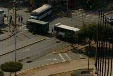 En la manifestación frente a la casa de estudios nuestros seguidores en redes sociales informaron que fueron colocados cuatro autobuses y que el acceso al lugar se mantiene restringido.