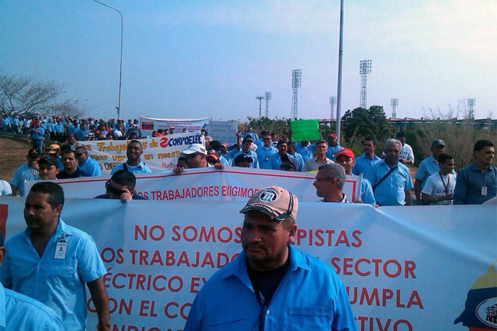 Los empleados de la estadal Corpoelec, situada en el sector Amparo de Maracaibo, protestan nuevamente la mañana de hoy frente a las instalaciones de la planta eléctrica para pedir reivindicaciones salariales y dotación de los implementos necesarios para realizar su trabajo.