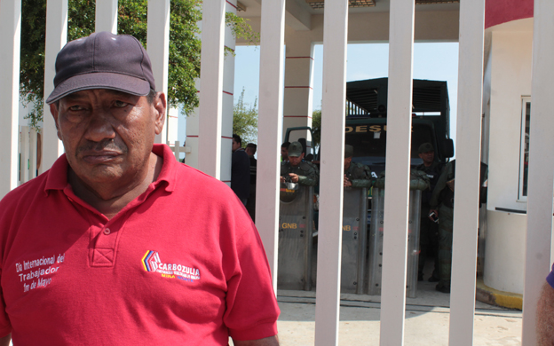 Merchán junto a unas docenas de trabajadores protestaron este martes 5 de febrero en la sede administrativa de Carbozulia, ubicada en la avenida El Milagro en Maracaibo. Un contigente del grupo antimotín de la Guardia Nacional les impidió el ingreso a los trabajadores a la sede.