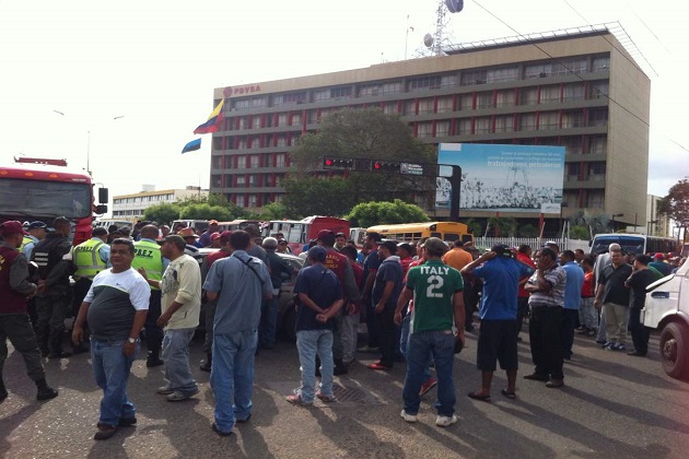 Desde tempranas horas de este lunes los transportistas de Maracaibo mantienen una protesta pacífica frente al Edificio Miranda, de PDVSA, en la avenida Padilla. Exigen respuestas a la estatal por la falta de lubricantes y escasez de combustible en la región.