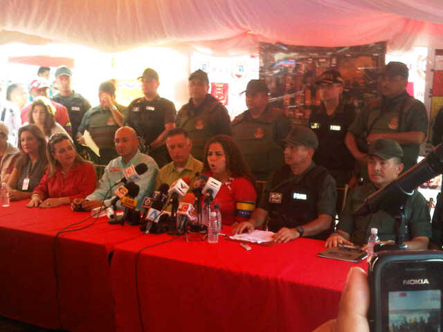 La ministra del servicio penitenciario, Iris Varela, realiza una rueda prensa para ofrecer el primer balance oficial de la evacuación de la cárcel de Sabaneta en el estado Zulia.