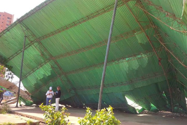 La información la ofreció Billy Gasca, secretario de Gobierno, desde la cancha del liceo Udón Pérez, donde iniciaron los trabajos de reparación de la estructura que cedió por los fuerte vientos.