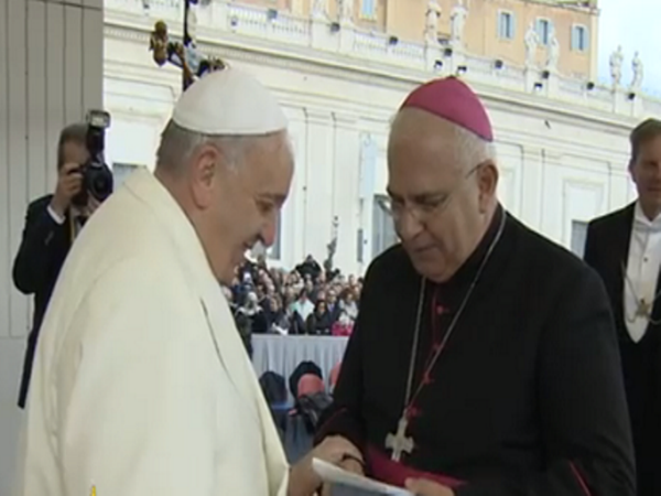 El Obispo Mario Moronta participó en la audiencia general del Papa Francisco, luego de la cual pudo darle un breve saludo y compartir algunas ideas con él. “Fue un breve encuentro en el cual envió una especial bendición a todos los miembros de la Iglesia local de San Cristóbal”, dijo el prelado.