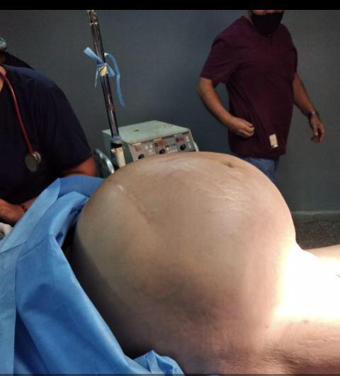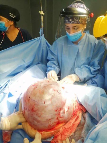 La paciente fue operada -en tiempo restringido por la pandemia- luego de una espera de más de 1 año, de un tumor en su ovario izquierdo (Cistoadenoma Mucinoso Papilar Izquierdo); dicho tumor tenía un peso estimado de 8 kilogramos y 90 por 90 centímetros de longitud activo en su organismo.