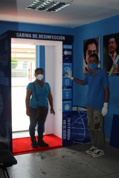 Como parte de las medidas para evitar la propagación del coronavirus, el alcalde bolivariano Leonidas González ordenó la instalación de una cabina de desinfección personal en la Farmacia Comunitaria ASIC Nueva Venezuela del municipio Lagunillas del estado Zulia.